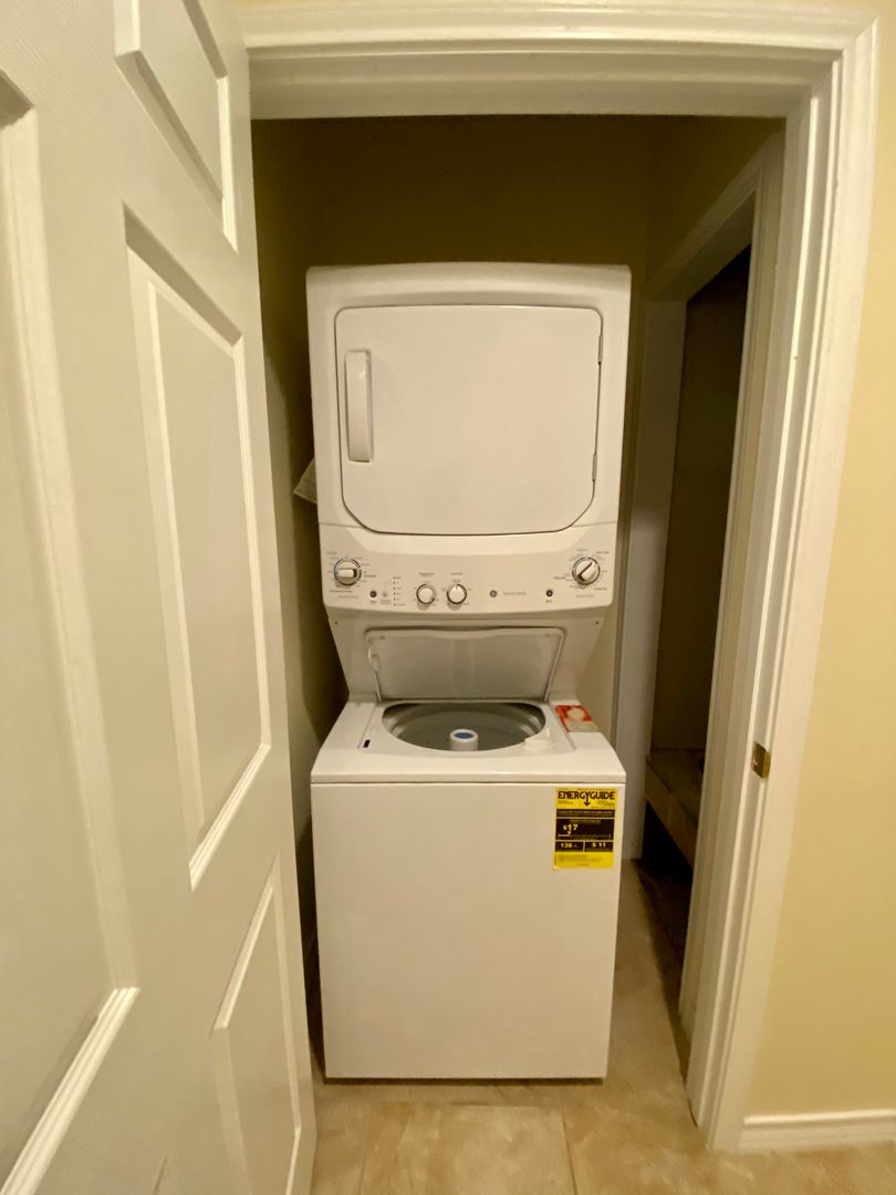 Available at the beginning of July. This unit is on the bottom level of a 5-plex. This 1 bedroom 1 bath features tile floors throughout, large bedroom, storage closets, ceiling fans and energy efficiency. Owner furnishes a stacked washer/dryer unit, refrigerator, range and dishwasher. Water, garbage, sewage and yard service are included in your monthly rent.