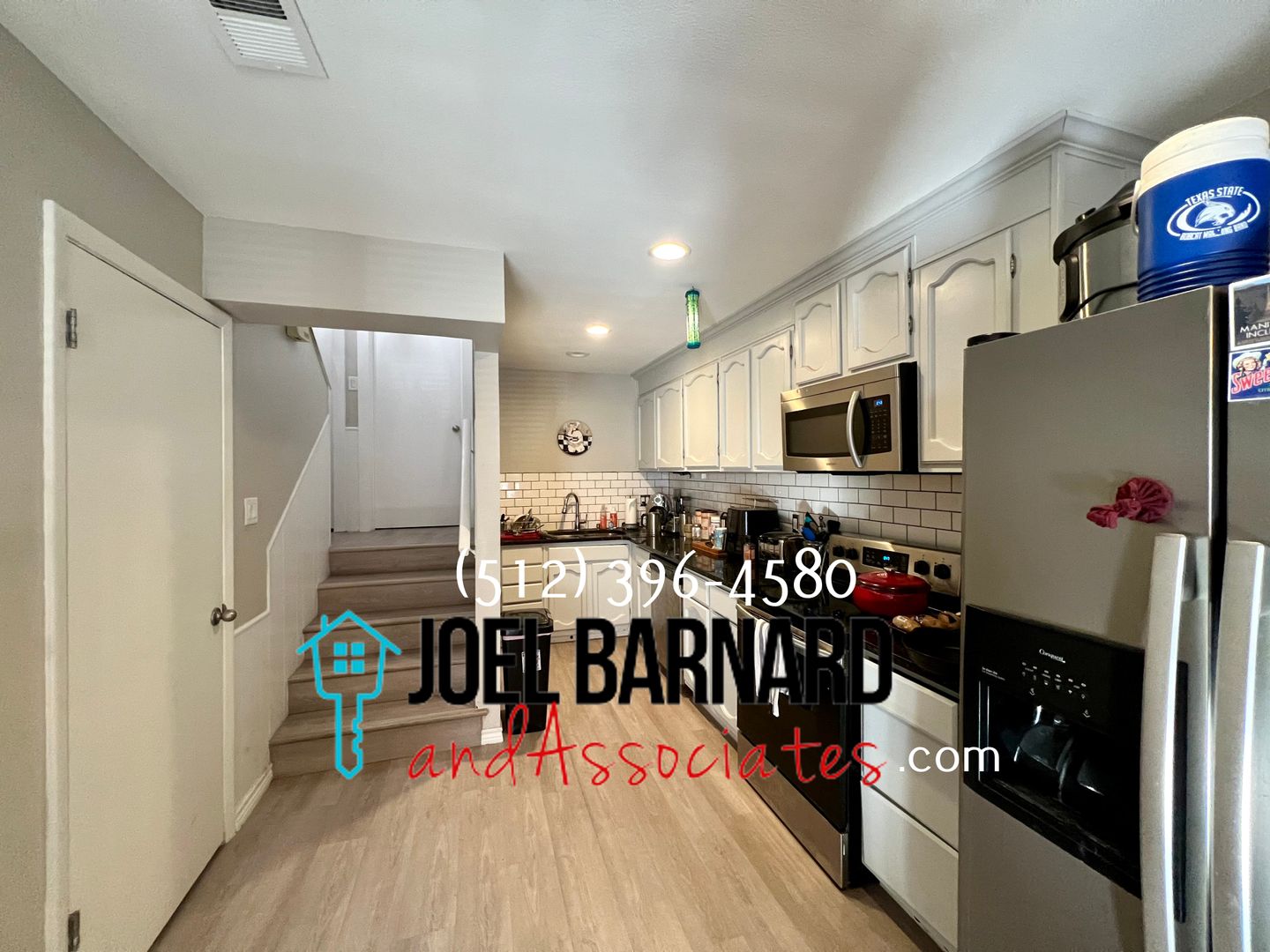 You cant get much closer to campus than this. The condo is nestled high on the hill side just across the street from Texas State University. The condo is split level and features 3 large bedrooms, an office, open concept kitchen and dining area, vinyl plank throughout, ceiling fans, central air, and up-graded kitchen and paint a couple years ago. On the main level residents will appreciate the large living room, eat in kitchen with up-dated appliances. Up the first short flight of stairs is the master bedroom and an office. Up the next set of stairs you will find 2 more bedrooms with large closet space full bath and laundry area.